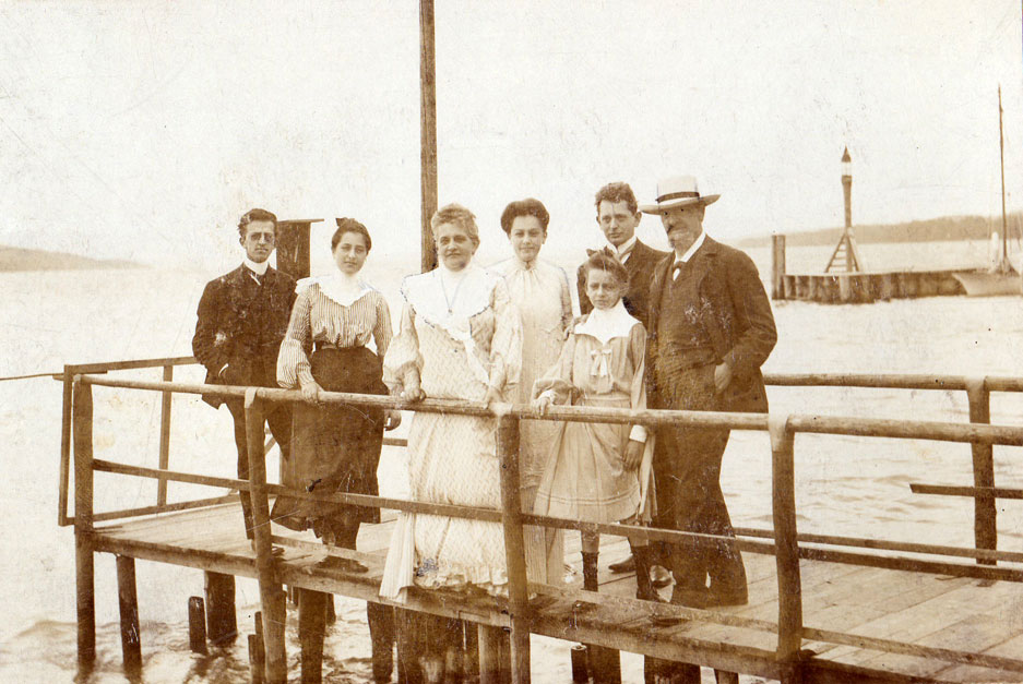 Tentative identifications: Left to right - .1 Walter Bondy, 2. Toni Bondy?, 3. Julie Bondy, 4.Edith Bondy?, 5. Martha Bondy?, 6. Ernst Cassirer, 7. Otto Bondy.